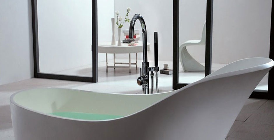 La baignoire îlot est à la salle de bain ce que l’ilot central est à la cuisine : pratique, déco et terriblement tendance. Il existe aujourd’hui des baignoires ilots dans de nombreuses matières en plus de l’acrylique : le corian (ou solid surface suivant les marques), l’acier et la fonte.